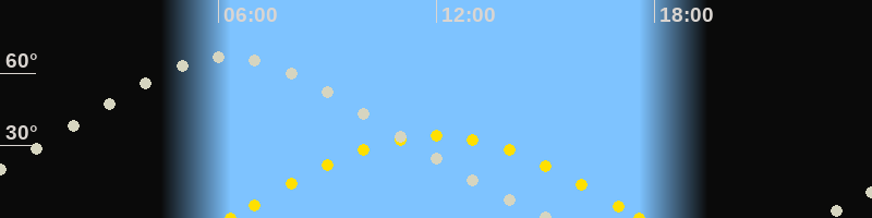 | Höchster Stand (Kulmination) | 06:15 Uhr (h=66.8°) |