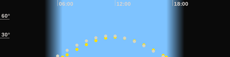 Höchster Stand (Kulmination)11:30 Uhr (h=33.7°)