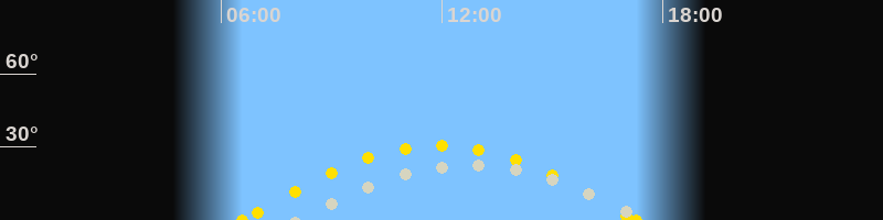 | Höchster Sonnenstand (Kulmination) | 11:56 Uhr (h = 30.6°) |