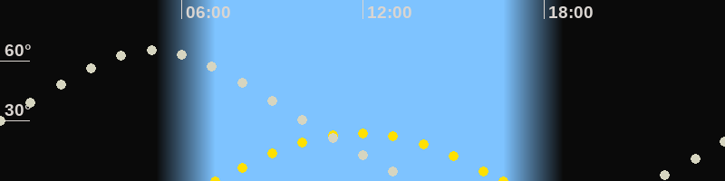 | Höchster Sonnenstand (Kulmination) | 11:53 Uhr (h = 24.1°) |