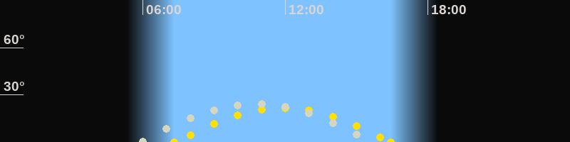 | Sonnenaufgang | 07:20 Uhr im Südosten (αAz = 117.5°) |