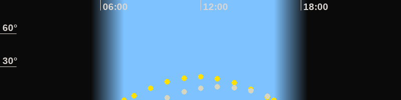 | Höchster Sonnenstand (Kulmination) | 11:54 Uhr (h = 20.9°) |