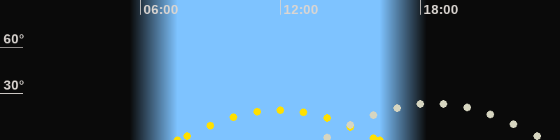 | Höchster Stand (Kulmination) | 18:24 Uhr (h=23.3°) |