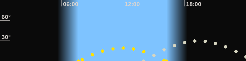 | Höchster Sonnenstand (Kulmination) | 11:56 Uhr (h = 19.3°) |