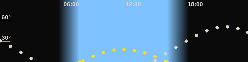 | Höchster Sonnenstand (Kulmination) | 11:56 Uhr (h = 18.6°) |