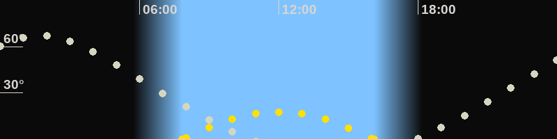 | Höchster Sonnenstand (Kulmination) | 11:58 Uhr (h = 17.7°) |