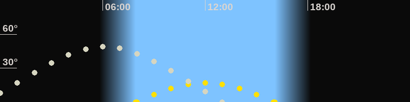 | Höchster Sonnenstand (Kulmination) | 12:00 Uhr (h = 17°) |