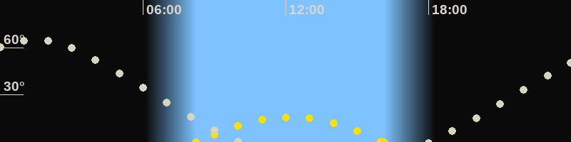 | Höchster Sonnenstand (Kulmination) | 12:11 Uhr (h = 16°) |