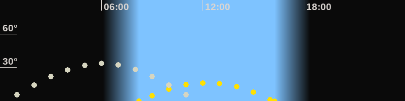 | Höchster Sonnenstand (Kulmination) | 12:14 Uhr (h = 16.5°) |