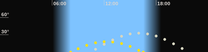 | Höchster Sonnenstand (Kulmination) | 12:19 Uhr (h = 18.2°) |