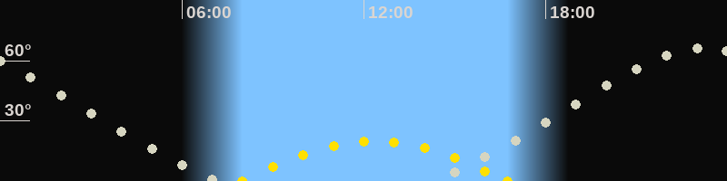 | Höchster Sonnenstand (Kulmination) | 12:21 Uhr (h = 19.9°) |