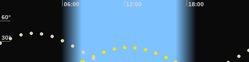 | Höchster Sonnenstand (Kulmination) | 12:23 Uhr (h = 21.4°) |