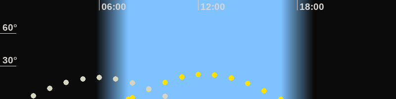 | Höchster Sonnenstand (Kulmination) | 12:23 Uhr (h = 22.5°) |
