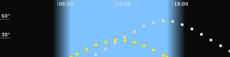 | Höchster Sonnenstand (Kulmination) | 12:24 Uhr (h = 26.7°) |