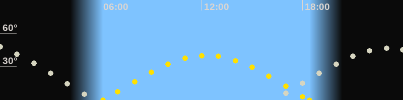 Höchster Sonnenstand (Kulmination)12:16 Uhr (h = 40.4°)