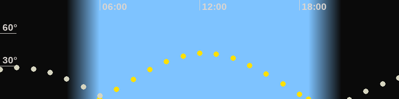 Höchster Sonnenstand (Kulmination)12:15 Uhr (h = 41.9°)