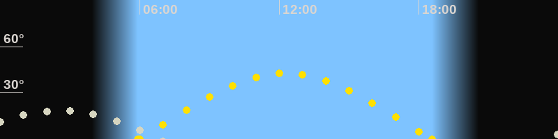Höchster Sonnenstand (Kulmination)12:15 Uhr (h = 42.7°)