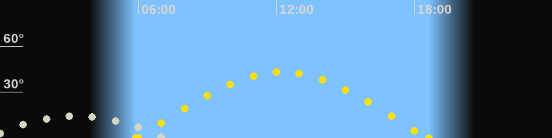Höchster Sonnenstand (Kulmination)12:14 Uhr (h = 43.1°)