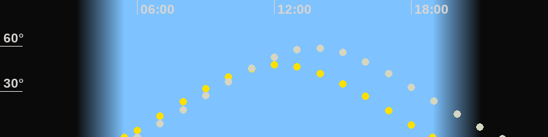 | Sonnenaufgang | 05:26 Uhr im Osten (αAz = 76.2°) |