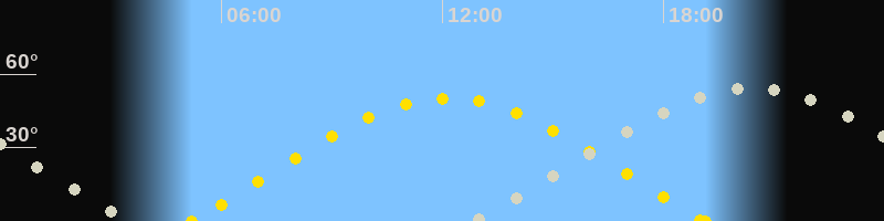 | Sonnenaufgang | 05:11 Uhr im Osten (αAz = 72.1°) |