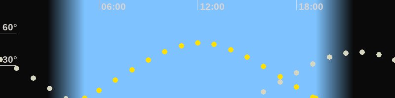 | Sonnenaufgang | 05:07 Uhr im Osten (αAz = 71°) |