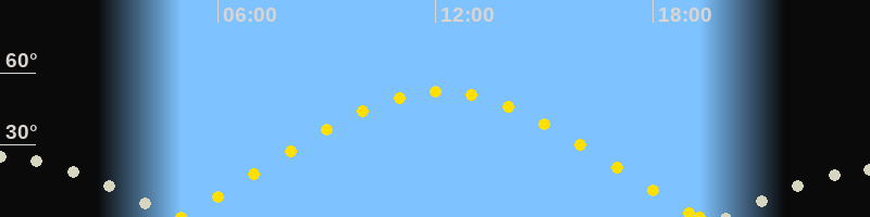| Sonnenaufgang | 04:59 Uhr im Osten (αAz = 68.7°) |