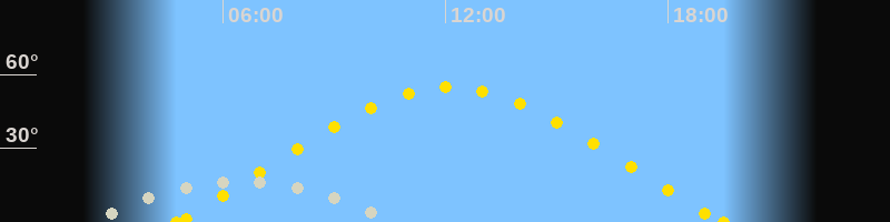 | Sonnenaufgang | 04:44 Uhr im Nordosten (αAz = 64.5°) |