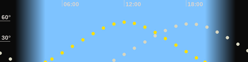 | Sonnenaufgang | 04:23 Uhr im Nordosten (αAz = 58.5°) |
