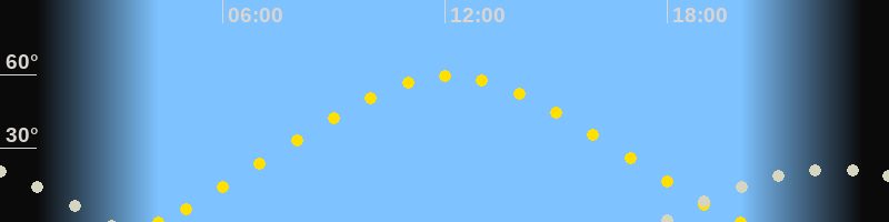 | Höchster Sonnenstand (Kulmination) | 12:06 Uhr (h = 59.5°) |