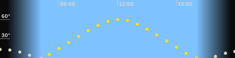 | Höchster Sonnenstand (Kulmination) | 12:07 Uhr (h = 60.1°) |