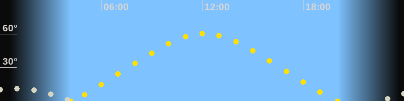 | Höchster Sonnenstand (Kulmination) | 12:07 Uhr (h = 60.3°) |