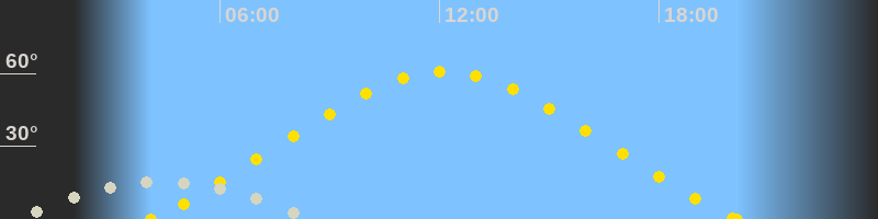 | Höchster Sonnenstand (Kulmination) | 12:07 Uhr (h = 60.9°) |