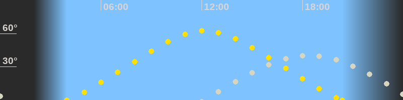 | Höchster Sonnenstand (Kulmination) | 12:10 Uhr (h = 62.5°) |