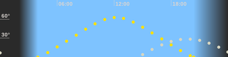 | Höchster Sonnenstand (Kulmination) | 12:11 Uhr (h = 62.6°) |