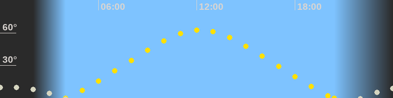 | Höchster Sonnenstand (Kulmination) | 12:12 Uhr (h = 62.7°) |