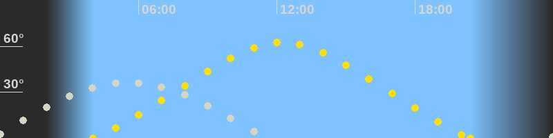 | Höchster Sonnenstand (Kulmination) | 12:13 Uhr (h = 62.5°) |