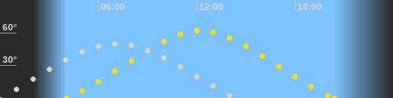 Höchster Sonnenstand (Kulmination)12:14 Uhr (h = 62.4°)