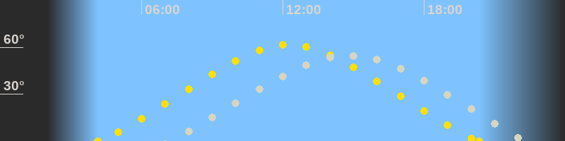 | Höchster Sonnenstand (Kulmination) | 12:15 Uhr (h = 61.6°) |