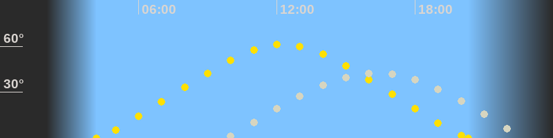 | Höchster Sonnenstand (Kulmination) | 12:15 Uhr (h = 61.3°) |