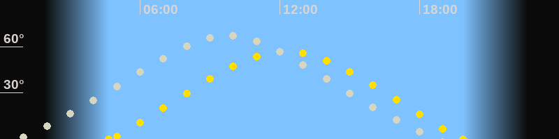 | Höchster Stand (Kulmination) | 09:43 Uhr (h=67.4°) |