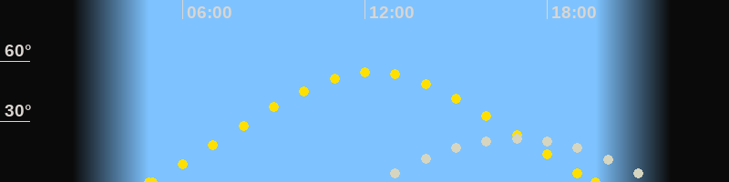 | Höchster Sonnenstand (Kulmination) | 12:15 Uhr (h = 54.5°) |