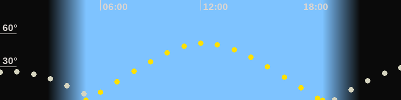| Sonnenaufgang | 05:08 Uhr im Osten (αAz = 69.8°) |