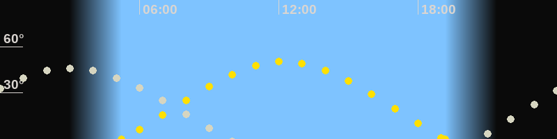 | Höchster Sonnenstand (Kulmination) | 12:12 Uhr (h = 50.3°) |