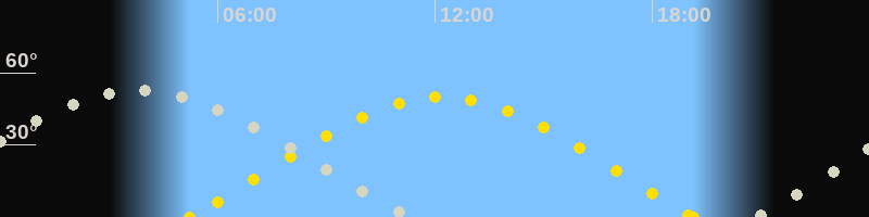 | Höchster Sonnenstand (Kulmination) | 12:12 Uhr (h = 50°) |