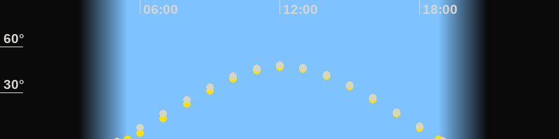 | Höchster Sonnenstand (Kulmination) | 12:09 Uhr (h = 46.7°) |