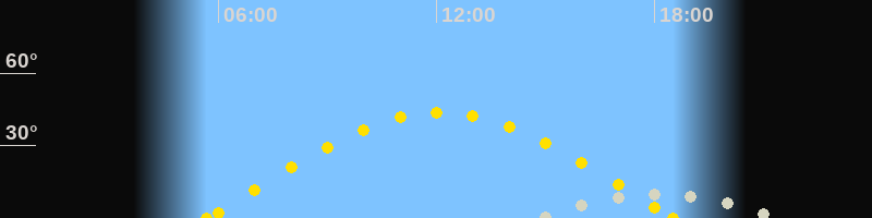 | Höchster Sonnenstand (Kulmination) | 12:06 Uhr (h = 43.7°) |
