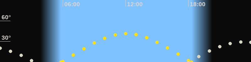 | Sonnenaufgang | 05:49 Uhr im Osten (αAz = 85.7°) |