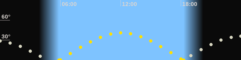 | Sonnenaufgang | 05:51 Uhr im Osten (αAz = 86.3°) |