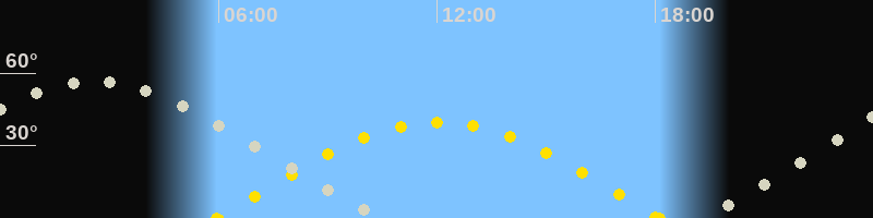 | Höchster Sonnenstand (Kulmination) | 12:03 Uhr (h = 39.5°) |