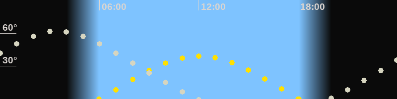 | Sonnenaufgang | 05:59 Uhr im Osten (αAz = 89.4°) |